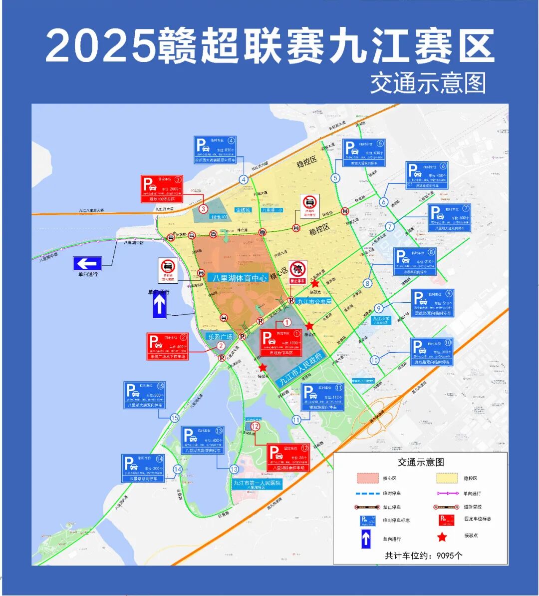 2025年江西省城市足球超级联赛第七轮比赛即将激情开战!九江市足球队将于8月23日(周六)在九江市体育中心主场迎战南昌市足球队。为确保比赛期间道路交通安全有序,根据《中华人民共和国道路交通安全法》《中华人民共和国道路交通安全法实施条例》《江西省实施〈中华人民共和国道路交通安全法〉办法》等法律法规的相关规定,结合九江市体育中心周边道路的实际情况,决定对相关路段实行临时交通管制,现就有关事项通告如下: