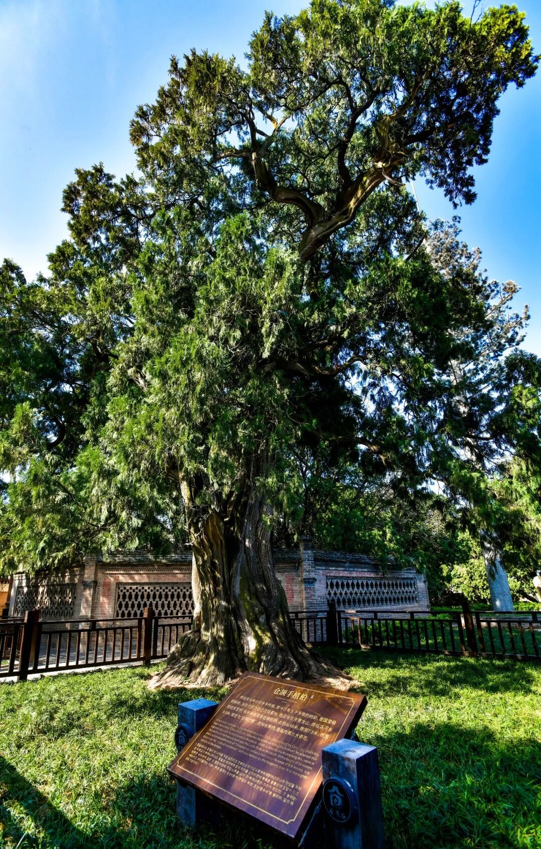 柏树+帝王陵寝/文庙/古寺:承载庄重文脉柏树以苍劲挺拔、长寿坚韧的特质,成为象征礼制与信仰的“标配树种”,搭配的文物多为彰显庄重感的场所:山西晋祠的树龄约3000年的周柏,与圣母殿、鱼沼飞梁共同营造祭祀文化氛围;陕西黄帝陵的树龄约5000年的“黄帝手植柏”,呼应文明起源的厚重;河北定州文庙的树龄约930年的“东坡双槐”,与文庙的儒家礼制属性深度绑定。