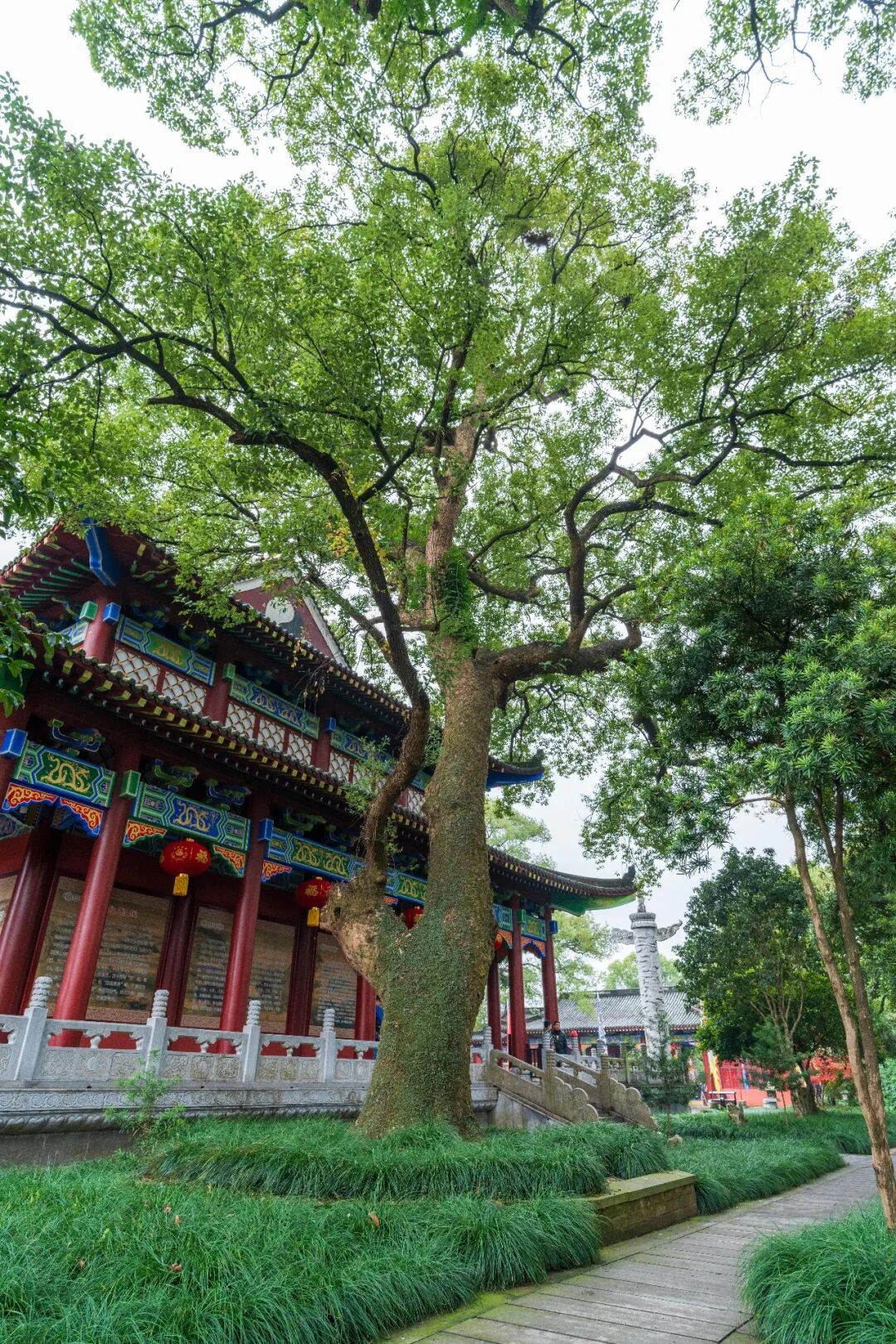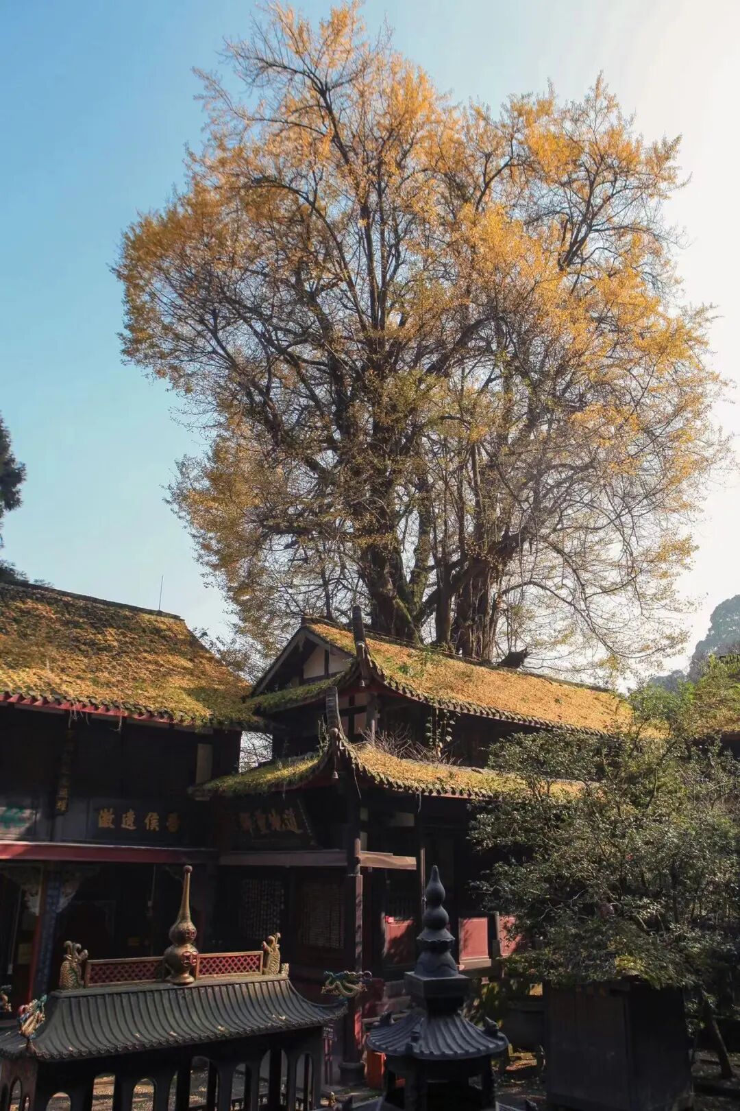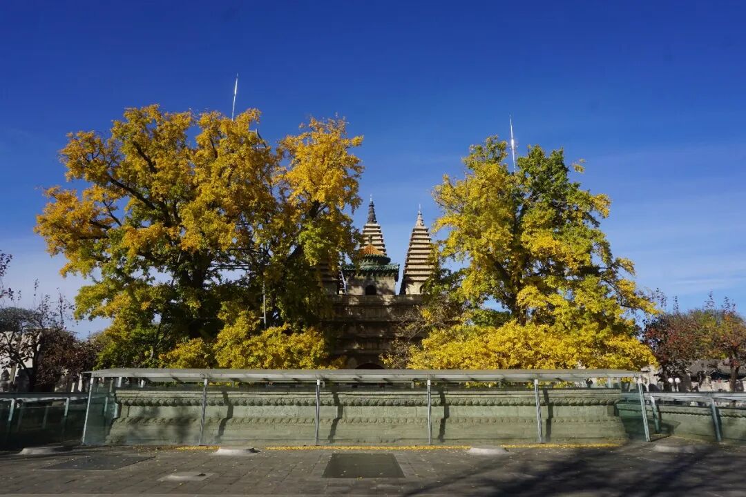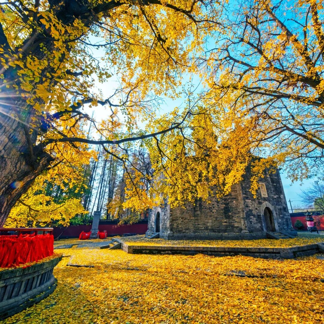 银杏+古刹/古塔:见证时光变迁银杏作为第四纪冰川遗留的“活化石”,以“古老、坚韧”的特质,适配历史悠久的宗教建筑:北京大觉寺的树龄约1000年的银杏,与大雄宝殿明代彩塑相映,见证古寺兴衰;湖北广德寺多宝塔的树龄1500年以上的“将军树”,与古塔并肩成为古刹历史的“双见证”;四川青城山天师洞的树龄约1900年的天师银杏,搭配道观“道法自然”的理念,尽显清幽意境。