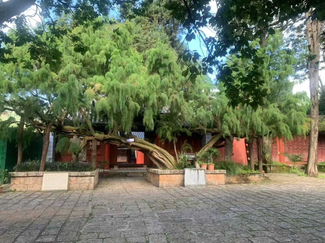 特色树种+摩崖石刻/少数民族建筑:展现地域文化地方特色树种与小众文物类型搭配,凸显地域文化个性:江苏孔望山摩崖造像的树龄约830年的流苏树,花期“覆霜盖雪”的景观与石刻的古朴质感形成视觉呼应;云南大宝积宫与琉璃殿的树龄500多年的柽柳,以倒八字形独特形态,与多民族风格建筑共同成为“民族交融”的实物见证。
