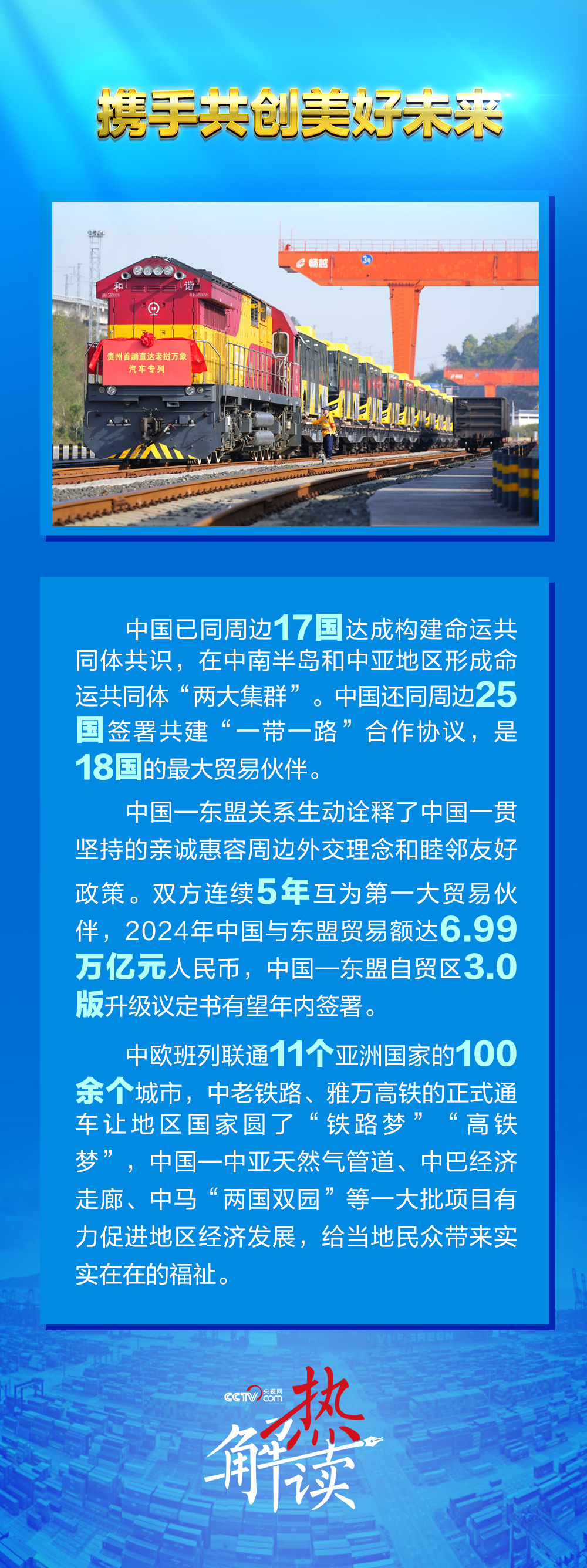 中国与周边国家山水相连,人文相通,利益相融,命运与共。周边国家在我国统筹国内国际两个大局、发展和安全两件大事中扮演着至关重要的角色。