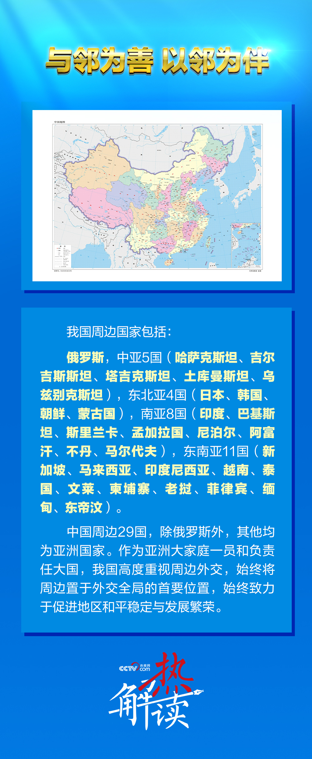 作为亚洲大家庭一员和负责任大国,中国高度重视周边外交,始终将周边置于外交全局的首要位置,视促进周边和平、稳定、发展为己任。